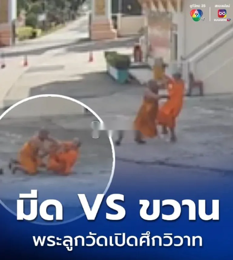 场面惊险!泰国俩僧侣持刀斧互砍 |
