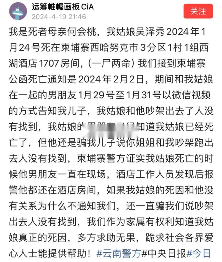 姑娘在西港去世,死因至今不明 |